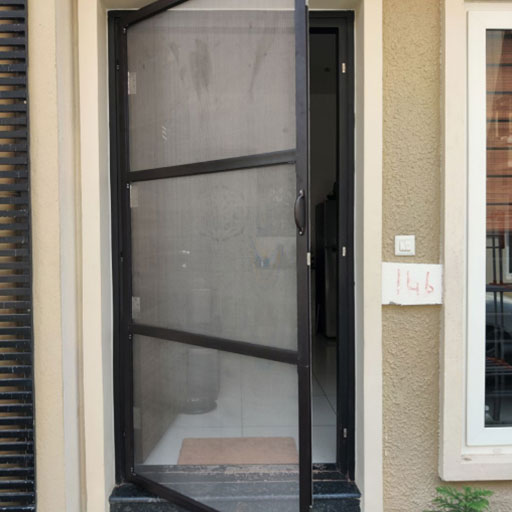 The aluminum door at your front main door is a statement in and of itself, exuding both contemporary and traditional. This straightforward and durable aluminum door is the way to go. The view is additionally enhanced by the partial glass fitment.